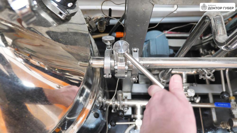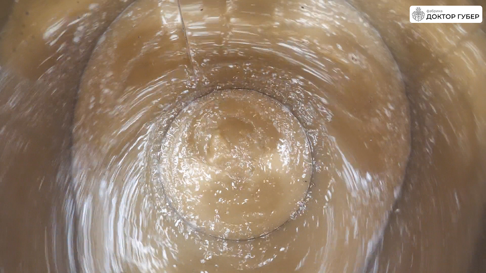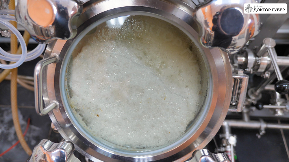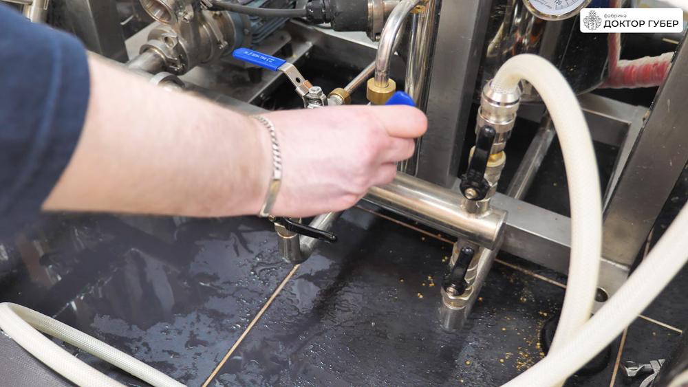 После перекачки сусла дополнительно промываем тёплой водой оставшуюся в фильтр-чане дробину, которую также отправляем в ПВК до тех пор, пока плотность сусла не снизится до 1%.