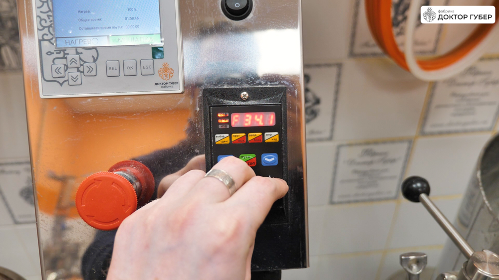 Полученный спирт-сырец переливаем обратно в ПВК пивоварни и герметично закрывают люк. Далее на блоке управления настраиваем режим дистилляции со следующими параметрами: