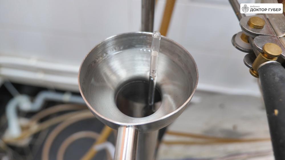 Вторая дробная дистилляция проводится с теми же настройками оборудования и по той же технологической схеме, что и первая. Ключевое отличие заключается в уменьшении объёма головной фракции. “Головы” отбираем в объёме 3% от абсолютного спирта.