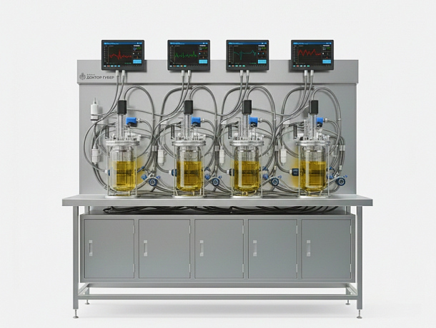 Четырёхёмкостный стеклянный биореактор «Доктор Губер» — это профессиональный инструмент для точной, управляемой и наглядной ферментации в лабораторных условиях. Он объединяет высокий уровень автоматизации, гибкость конфигурации, визуальный контроль процесса и возможность параллельной работы с несколькими культурами.