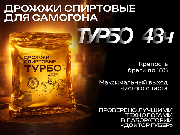 - Получаемая крепость браги: до 18% об. спирта при начальной плотности сусла 30 %