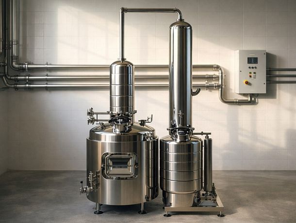 • Вакуумный контур и герметизация. Установка рассчитана на работу под вакуумом — до −0,08 МПа. Все соединения герметизированы, предусмотрен вакуумный клапан и патрубки под подключение насоса.