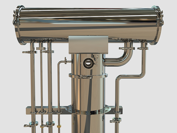 Все элементы установки, контактирующие с продуктом, выполнены из пищевой нержавеющей стали. Материал устойчив к коррозии, легко моется, не влияет на вкус и аромат спирта и соответствует санитарным требованиям промышленного производства.