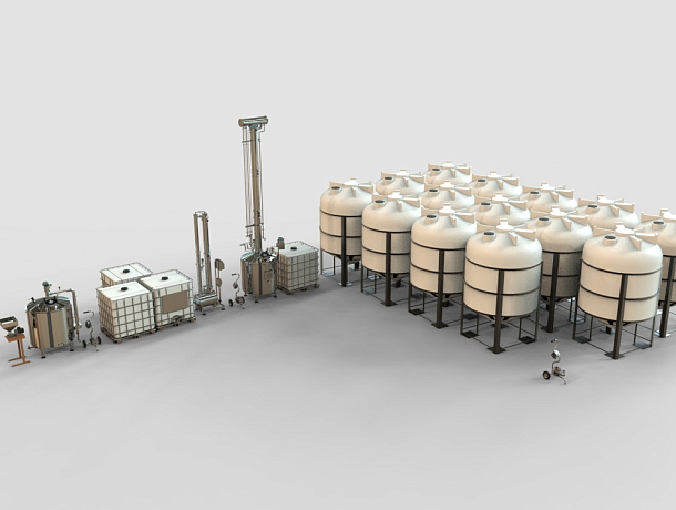 - Комплекс "под ключ". Комплекс позволяет эффективно готовить сусло, проводить ферментацию, перегонку и ректификацию, обеспечивая стабильный выход и качество продукта пищевого уровня.