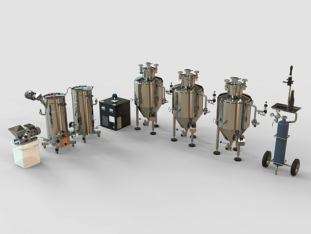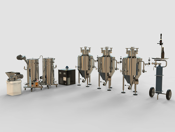 Комплекс не занимает много места, но даёт возможности полноценного производства на уровне профессиональной мини-пивоварни.
