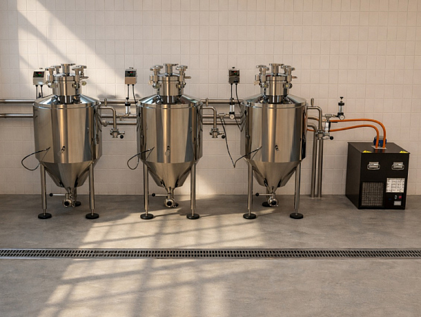Бродильное отделение с универсальным ЦКТ — компактное решение для точного брожения.