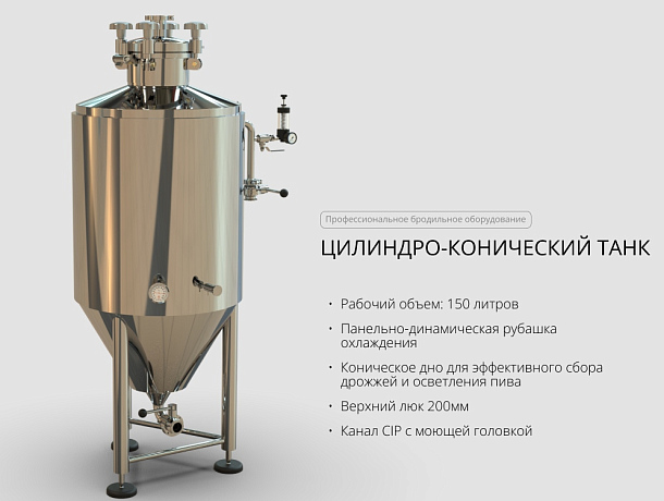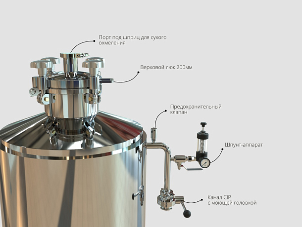 Благодаря рабочему давлению до 3 бар, ЦКТ можно использовать не только для ферментации, но и для карбонизации напитков прямо в ёмкости.