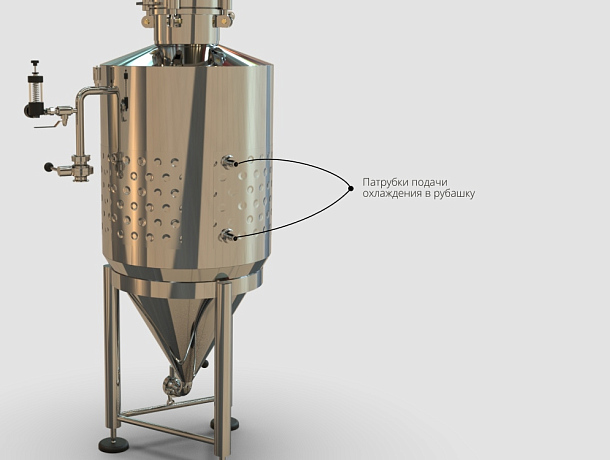 Рубашка с циркулирующим хладагентом обеспечивает стабильное поддержание температуры в ЦКТ, снижая влияние внешних условий на ход брожения. Особенно актуально при использовании чувствительных к температуре штаммов дрожжей.