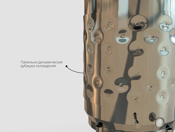 Рубашка с циркулирующим хладагентом обеспечивает стабильное поддержание температуры в ЦКТ, снижая влияние внешних условий на ход брожения. Особенно актуально при использовании чувствительных к температуре штаммов дрожжей.