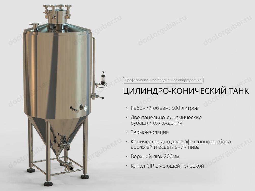 ЦКТ «Профи» 500 л с термоизоляцией — профессиональный цилиндро-конический танк для контролируемого брожения, дображивания и созревания напитков под давлением.