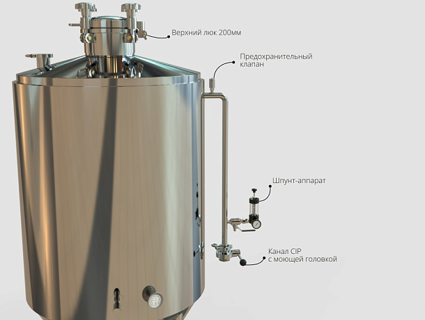 Емкость рассчитана на брожение, созревание и карбонизацию в одном цикле. Также подходит для производства игристых вин и шампанских напитков.