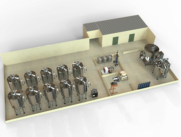 Комплекс включает оборудование для полного технологического цикла — от подготовки сырья до розлива готового пива — и идеально подходит для оснащения: