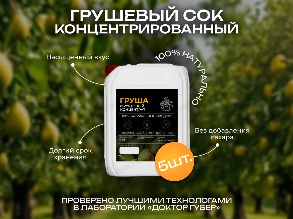 Концентрированный грушевый сок — это полностью натуральный продукт, созданный на основе плодов груши, собранных в стадии технической зрелости. Производится партнёром «Доктор Губер» в России по современной технологии, включающей дробление фруктов, получение сока прямого отжима и последующее сгущение за счёт выпаривания лишней влаги.
