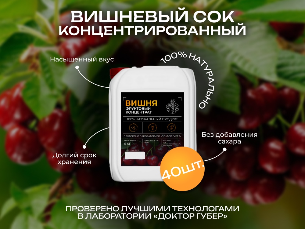 • Концентрированный вишневый сок 5 кг - 40 шт.