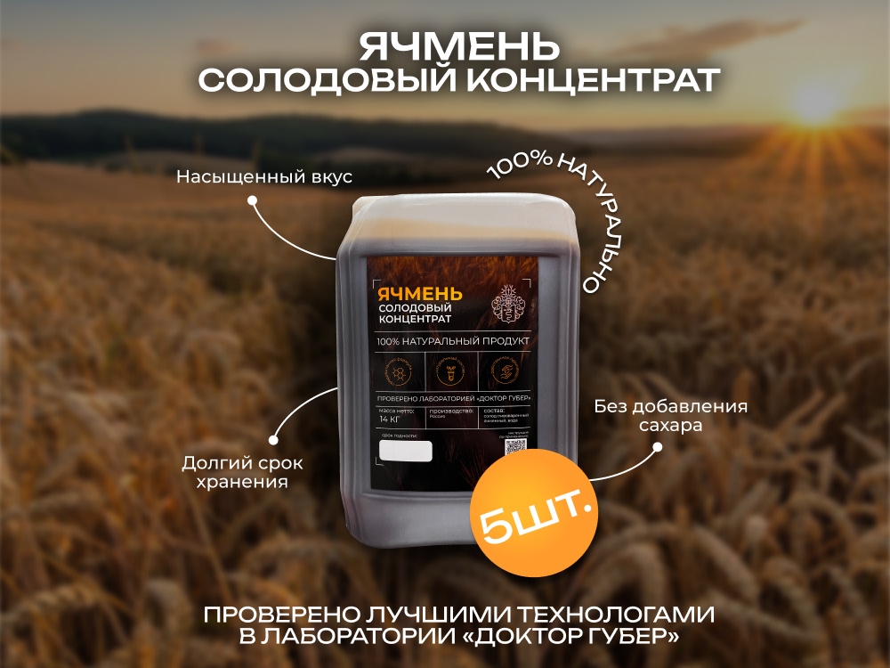 Концентрат производится из отборного пивоваренного ячменного солода по оригинальной рецептуре Фабрики «Доктор Губер». Перед выпуском каждая партия проходит строгую лабораторную проверку, что гарантирует стабильное качество и безопасность продукта.