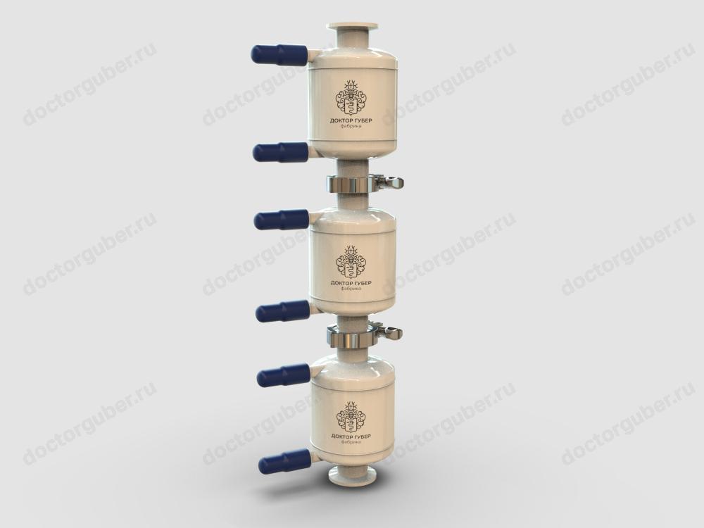 Фильтрация дистиллята осуществляется путем последовательного прохождения жидкости через каскад из трёх фильтрующих капсул. Такая система обеспечивает комплексную очистку и улучшение вкуса напитков.