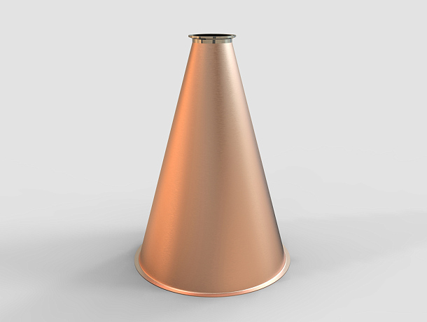 Разборная конструкция упрощает уход за медными элементам и удаление окислов, так же позволяет использовать конус и сферу, как крышки перегонного куба для получения больших вариацией профиля конченого продукта.