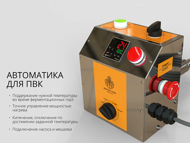 Подключайте насос для перекачки сусла и электрическую мешалку к блоку автоматики для комфортной работы.