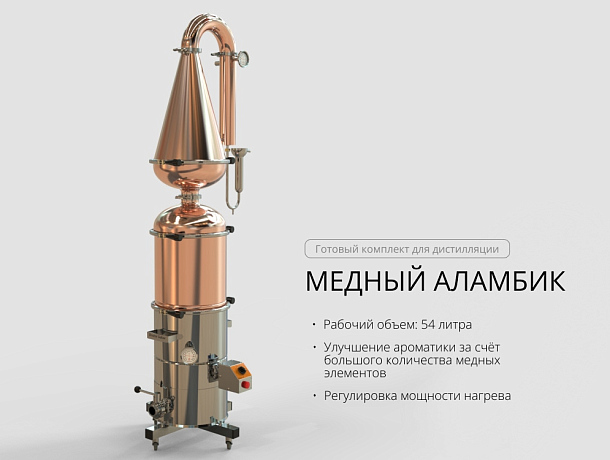 Аламбик 54 литра — эффективный и эргономичный комплект оборудования для дистилляции. Готовьте любимые напитки в домашних условиях: