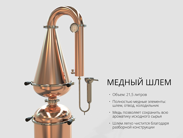 С этим аламбиком Вы заново откроете для себя лучшие традиционные дистилляты, сможете поэкспериментировать с рецептурами и обеспечите себя и близких качественными напитками на любой вкус!