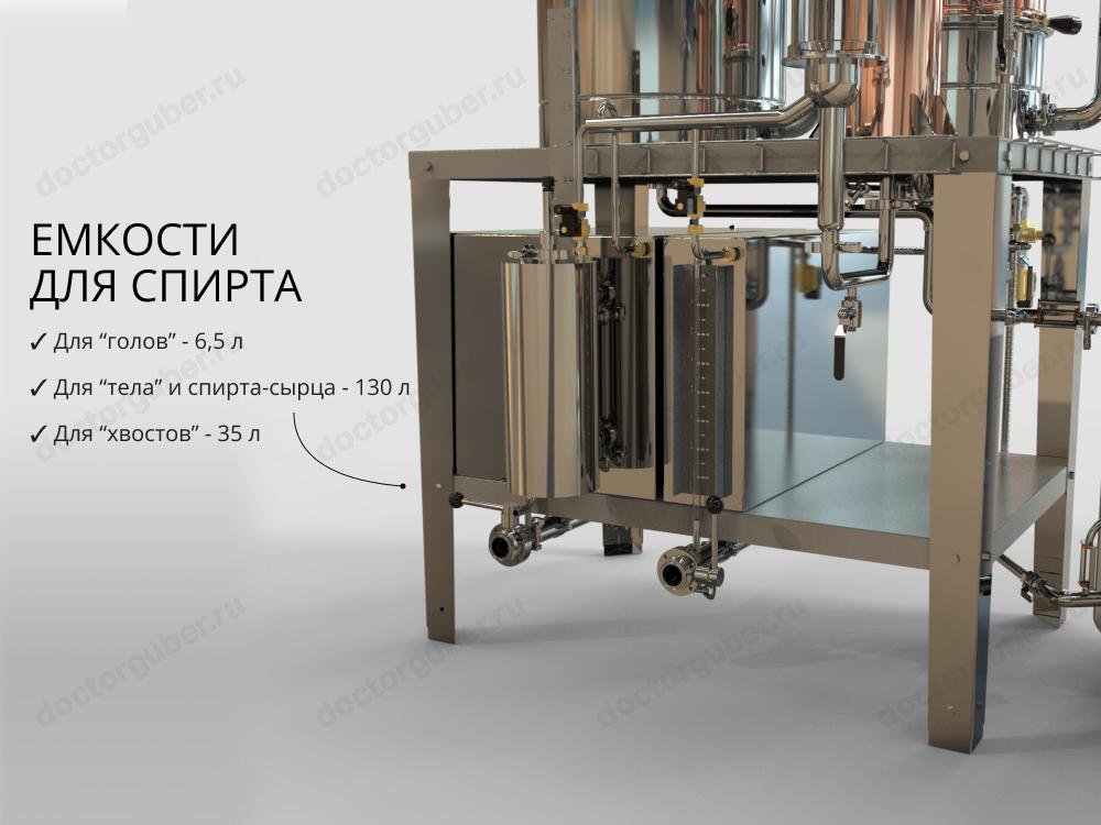 Встроенные емкости с мерными шкалами помогают удобно собирать и хранить спирт, разделяя его по фракциям и предотвращая потери через испарение и проливы.