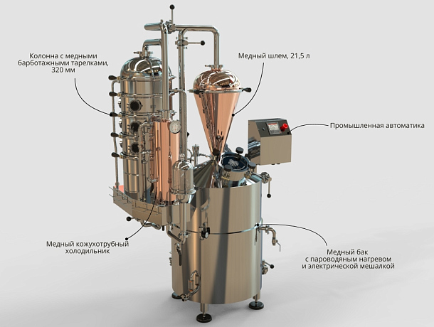 • фруктовые дистилляты и ароматные напитки благодаря медному шлему и барботажной колонне.