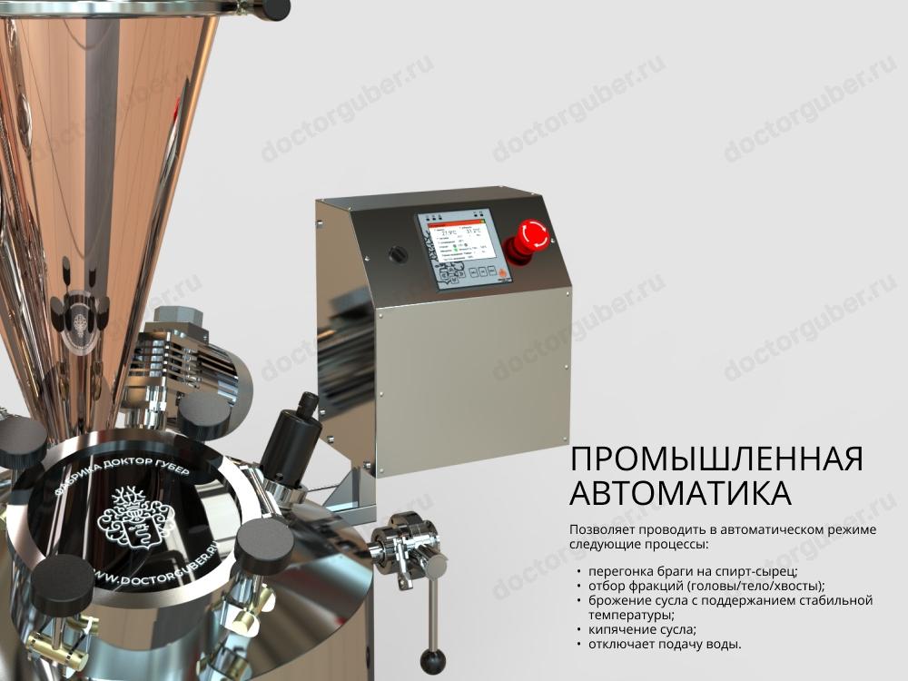 • Медный холодильник обеспечивает высокую скорость охлаждения, а регулировка крепости осуществляется подачей воды и мощностью нагрева без ручного возврата флегмы.