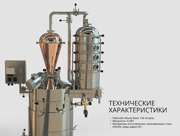 • Оптимальный объём 130 литров и диаметр 66 см подходят для продвинутой домашней или крафтовой винокурни.
