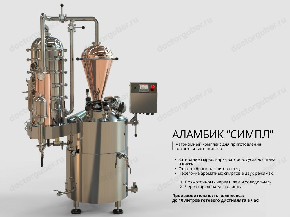 Аламбик Симпл нержавеющий — универсальная установка для производства нейтрального зернового спирта, пива и ароматных дистиллятов.
