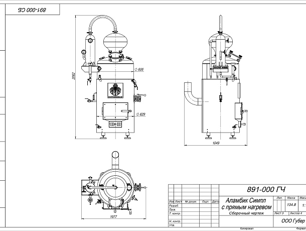 Конструкция аламбика Симпл с прямым нагревом