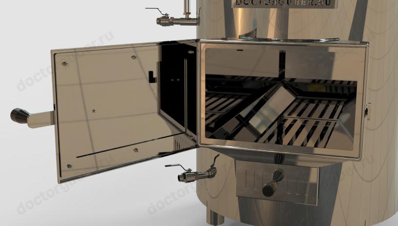 Загрузка сырья в бак происходит через стеклянный люк, который также позволяет визуально контролировать процесс в баке.