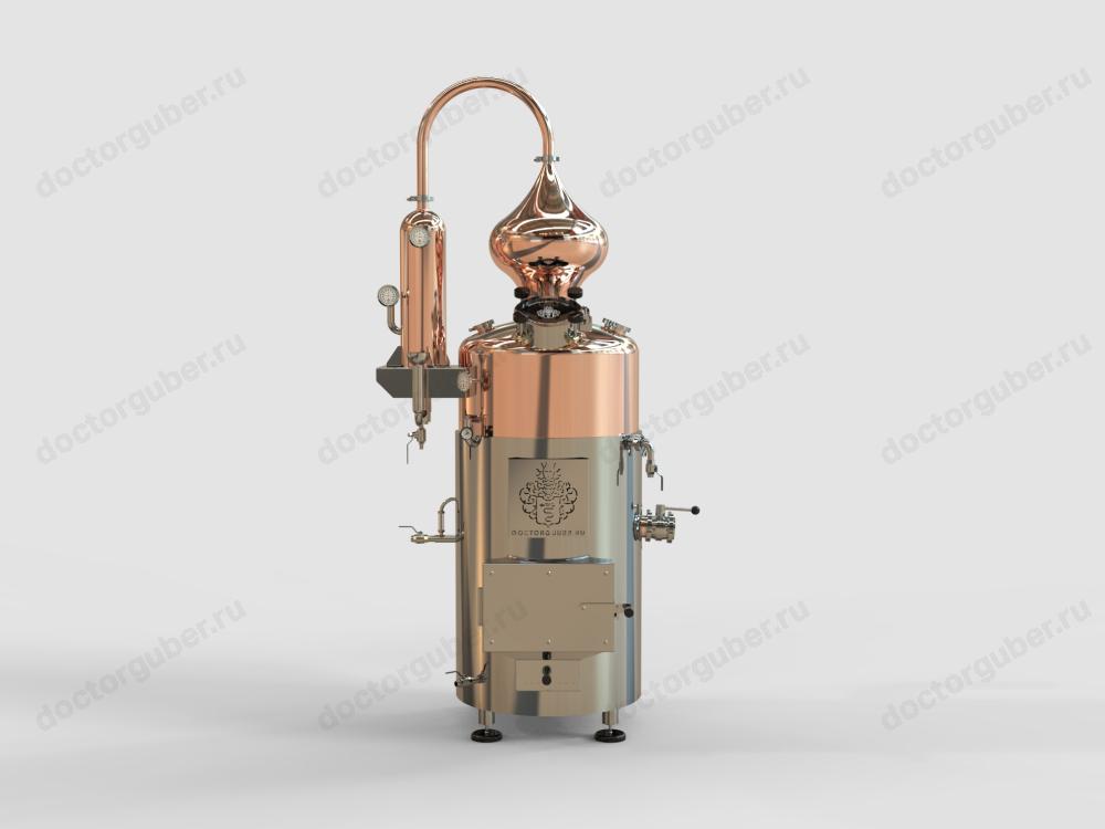 Корпус аппарата и шлем изготовлены из высококачественной меди, активно взаимодействующей с парами спирта. Это снижает содержание тяжёлых и сернистых соединений, увеличивая выход ароматических эфиров. В баке предусмотрена возможность установки мешалки для работы с густыми брагами.