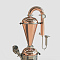 Медный холодильник в данном аламбике повторяет устройство промышленных охладителей для профессиональных спиртзаводов. Пары спирта проходят в кожух через медный отвод, присоединенный к шлему, и идут не напрямую, а по сложному маршруту по стенкам, медным «ступенями» и трубкам с холодной водой. Такая конструкция делает путь пара по холодильнику длиннее и значительно увеличивает площадь контакта его с медными охлаждающими элементами. В итоге спирт получается крепче и насыщеннее за счет химических свойств меди, увеличивающей количество ароматных эфиров в продукте.