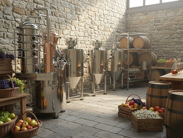 Винокурня под ключ — комплекс профессионального оборудования для организации дистилляционного цеха полного цикла дома, в небольшой частной винокурне или в ресторане.