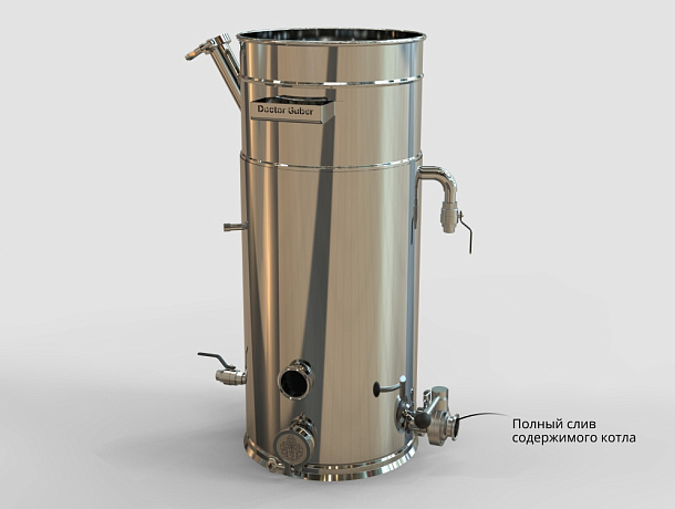 • Технологическое исполнение пароводяного котла включает в себя использование передовых разработок для повышения эффективности. К ним относятся малое межстенное пространство. Это одно из отличительных особенностей ПВК от "Доктор Губер". Благодаря ему содержимое котла быстрее нагревается и быстрее охлаждается при охлаждении содержимого рубашкой. Это существенно экономит время и ресурсы при увлечении любимым хобби.
