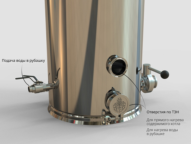 • Два отверстия под ТЭН: в пароводяную рубашку и внутрь бака.