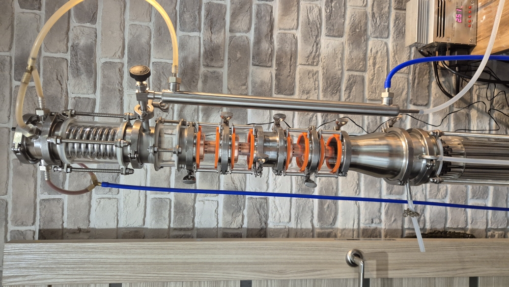 Входящие в состав колонны колпачковые уровни «моно-арома» (запатентованная модель Фабрики «Доктор Губер») позволяют работать на высоких мощностях – до 9 кВт при сохранении качества получаемого продукта.