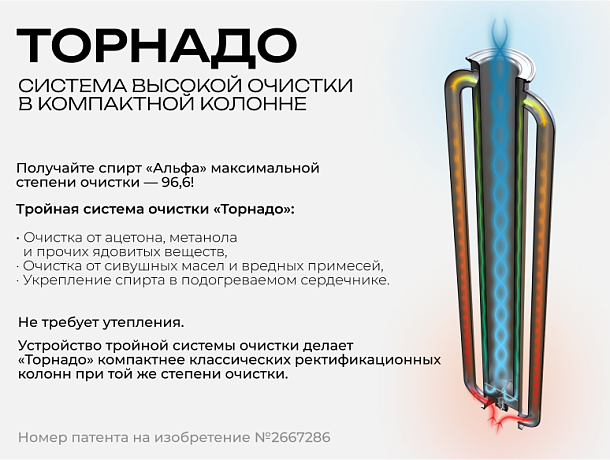 - Колонна Торнадо поможет вам получить идеальный нейтральный спирт, соответствующий всем стандартам качества, включая ГОСТ!