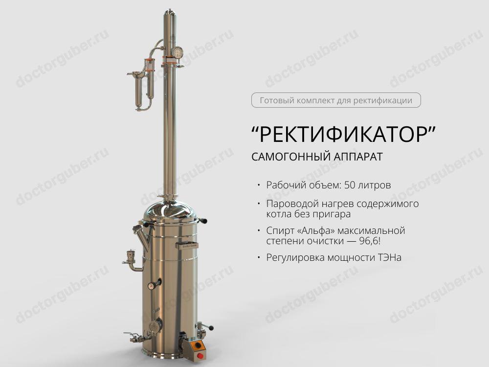 Таким образом, пар в колонне проходит по длинному извилистому пути, постоянно конденсируясь на стенках и в насадке. Это обеспечивает высочайшую степень очистки спирта от посторонних примесей и позволяет получить на выходе спирт-ректификат с максимальной крепостью 96,6% об.