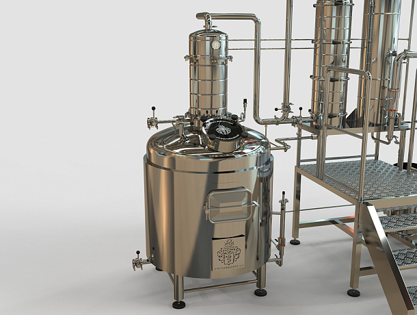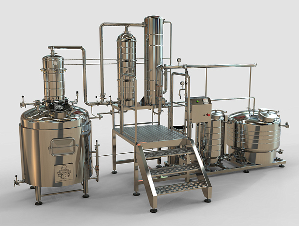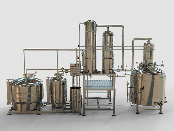 - Дистилляционная колонна с мощным дефлегматором предназначена для производства насыщенных ароматных спиртов из фруктового сырья в условиях пониженного давления.